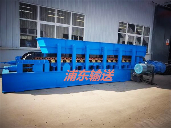 重型鏈板給料機(jī)常用用于粗破供料及中轉(zhuǎn)倉倉底出料。該機(jī)能定量的將物料向大型破碎機(jī)均勻供料,采用交流變頻調(diào)速的方式控制其生產(chǎn)能力,應(yīng)用了大速比、大扭距并具有機(jī)械過載保護(hù)功能的硬齒面齒輪減速器直聯(lián)傳動與無鍵連接等**技術(shù)。牽引鏈為高強(qiáng)度履帶鏈條, 其特點是節(jié)距誤差小運動平穩(wěn),強(qiáng)度高,拉力大無需潤滑。
